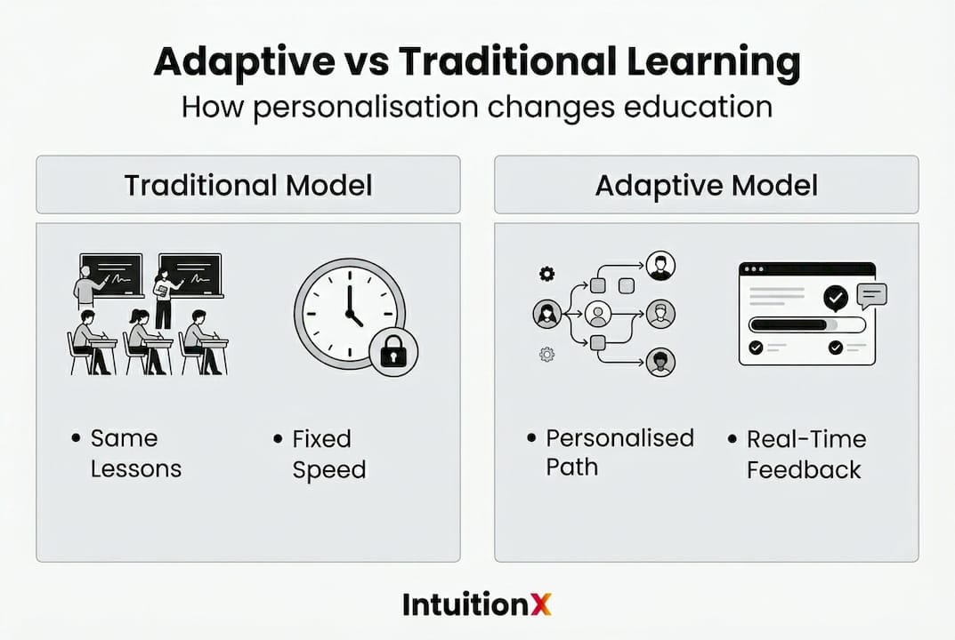 | Feature | Traditional learning | Adaptive learning |