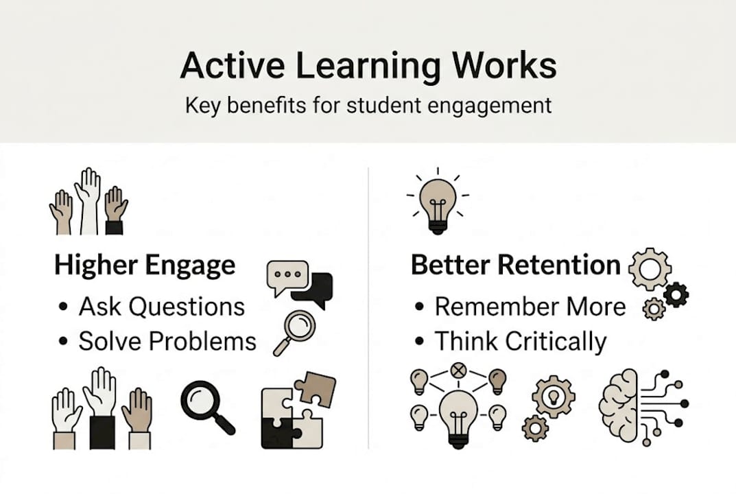 Active learning boosts retention and engagement compared to passive approaches, and the data backs this up comprehensively. The shift is not just about using different activities. It is about changing how students relate to the material they are studying.