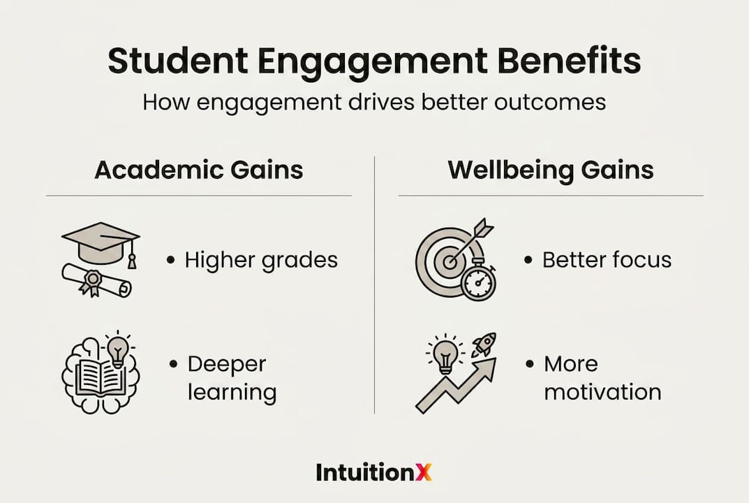 | Boosts performance and wellbeing | Engaged students have higher grades and healthier mindsets, making engagement vital for academic and personal success. |